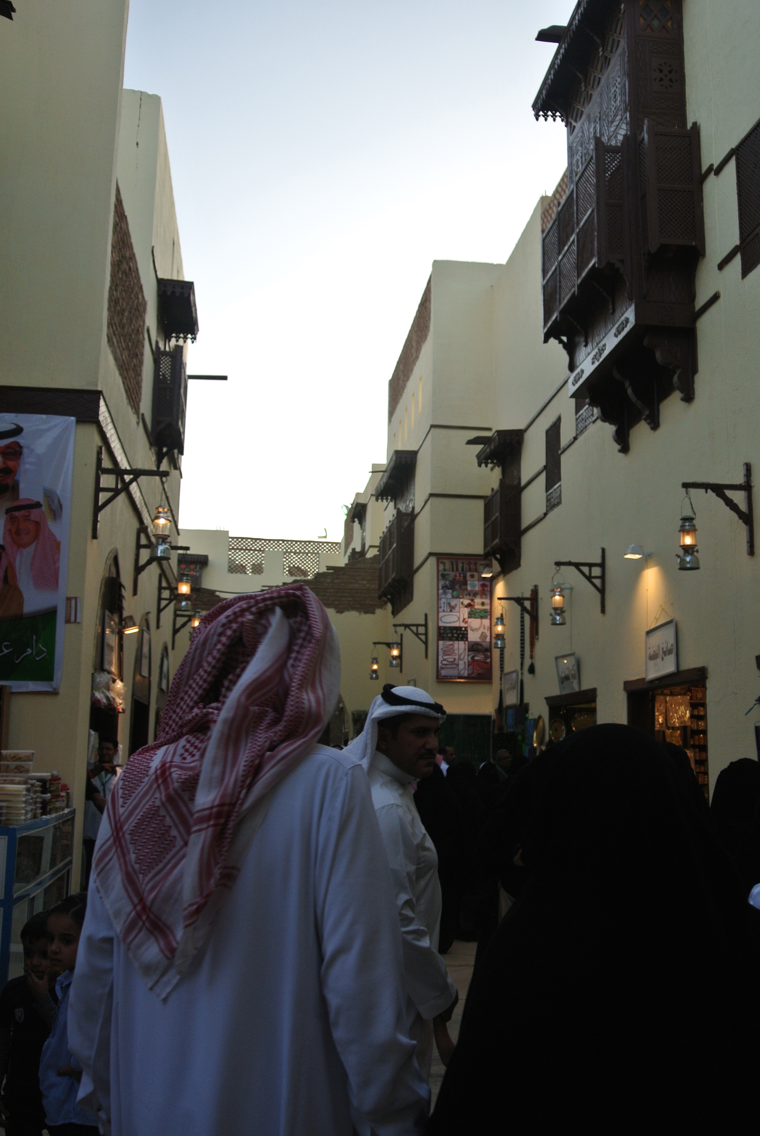 A two week long cultural and heritage festival is held each year at Janadriyah,  some 30 miles outside Riyadh.  Originally The festival was founded as a massive camel race meet,  but has gradually become a celebration of the regional heritage of Saudi Arabia.  It now has a vast purpose built site.  Think of the Royal Agriculture Show on steroids .  There is a Camel racecourse and stand, complete with Royal Box.  There are reconstructions of the various types of historical architecture from the Arabian regions,  including Jeddah,  Mecca and Medina which all look very authentic.